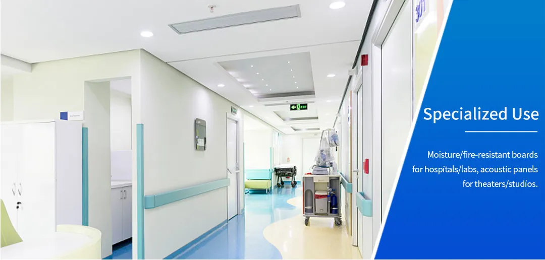 • Specialized Use: Moisture/fire-resistant boards for hospitals and laboratories.